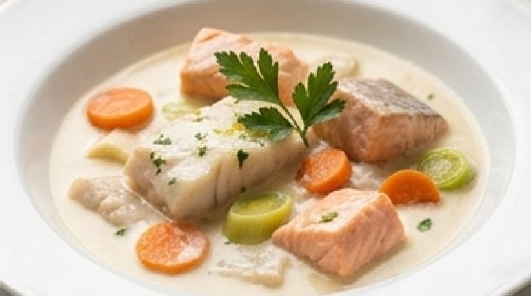 📌 Blanquette de la mer : colin, saumon et pétoncles en sauce crémeuse