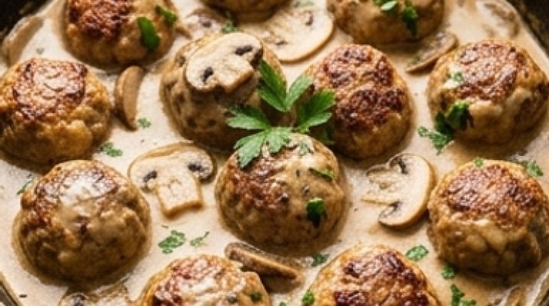 📌 Boulettes de viande maison, sauce crémeuse aux champignons