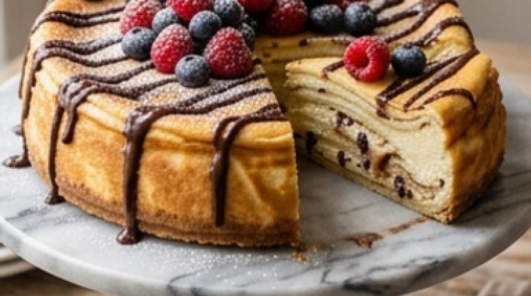📌 Cheesecake New-Yorkais Fourré aux Crêpes et Ricotta Chocolatée