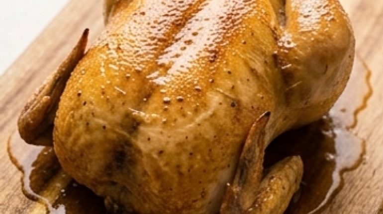 - L’ail en poudre — C’est l’ingrédient qui surprend. L’ail en poudre résiste mieux à sept heures de cuisson que l’ail frais, qui peut devenir amer sur la durée. Si vous préférez le frais, glissez 3-4 gousses entières dans la cavité du poulet plutôt que de les mettre sur la peau.