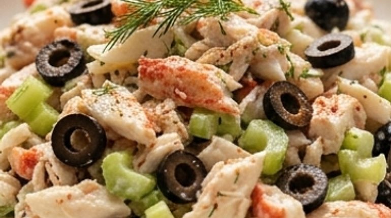 Salade de fruits de mer crémeuse à la mayo et olives noires