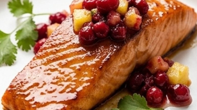 📌 Saumon laqué sirop d’érable et relish canneberge-ananas : le plat de fête qui épate sans stress