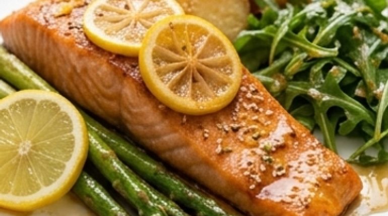 📌 Saumon rôti citron-soja, asperges et pommes de terre au sésame