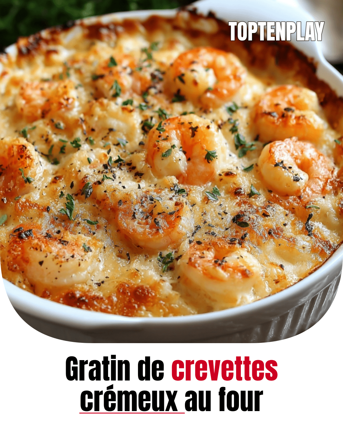 Une croûte dorée de fromage fondu cache des crevettes tendres dans une sauce aillée irrésistible. 🧀.....ꪜ̲o̲i̲r̲ Pl̲u̲s̲👇